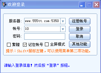 1)在服务器栏中输入:www.555tt.com:5350。